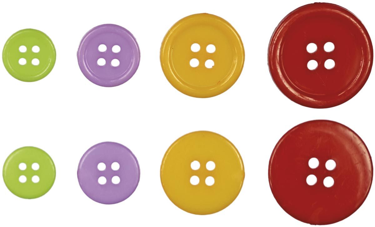 Plastové knoflíky, kulaté, průměr: 12 mm, 15 mm, 20 mm, 25 mm, mix barev. 30 kusů.