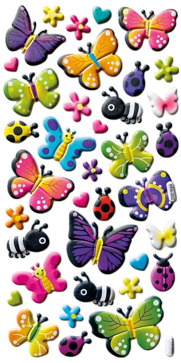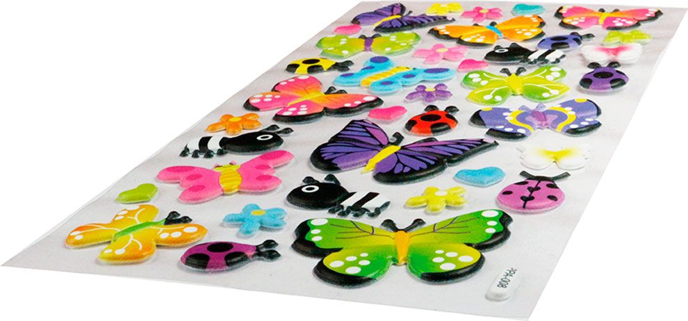 Konvexní samolepky, vzor: motýli, berušky, včelky.