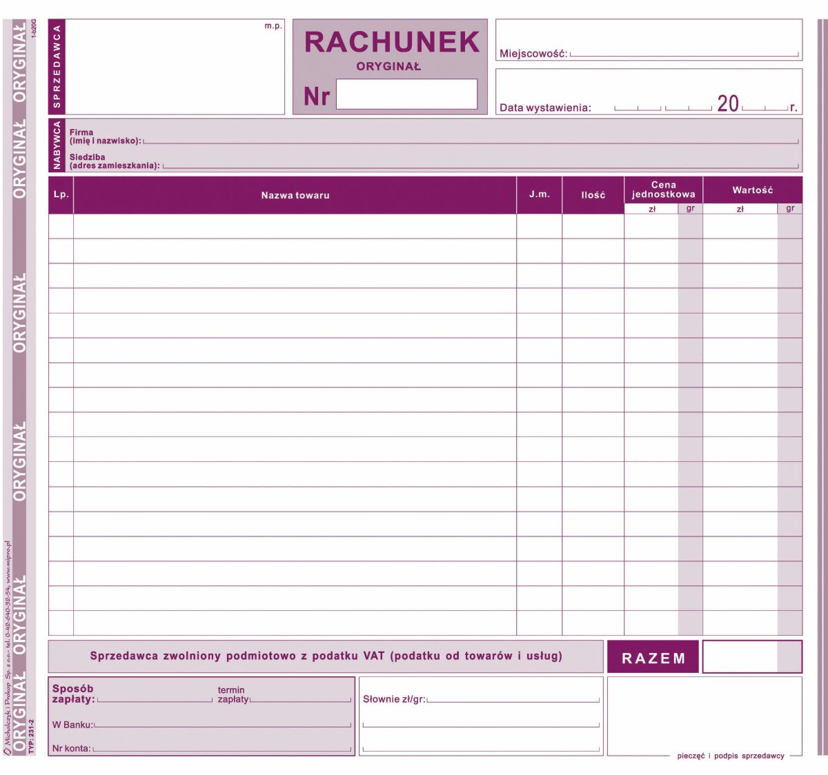 Vlastní kopie účtu Michalczyk i Prokop pro osvobození od DPH 2/3 A4 80k. (231-2)